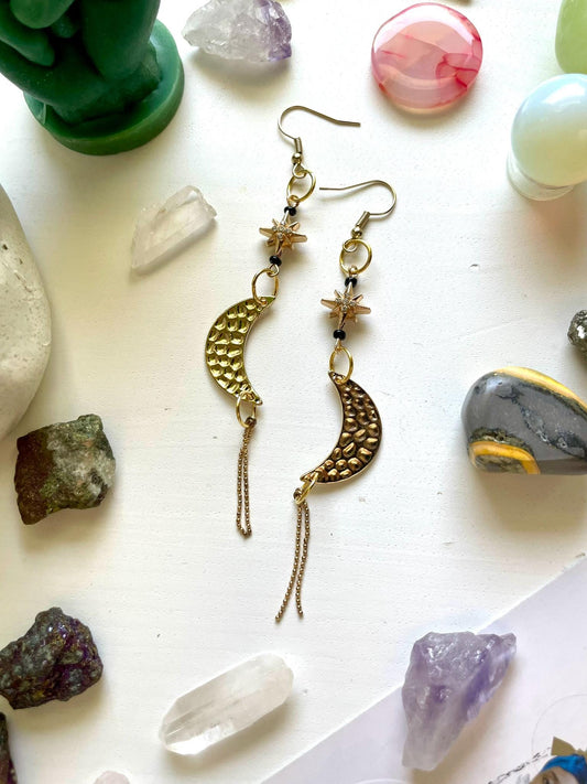 Celestial star and moon witchy dangle statement earrings | Halloween gifts for her | Nickel Free Hypoallergic ear wires | upcycled beads