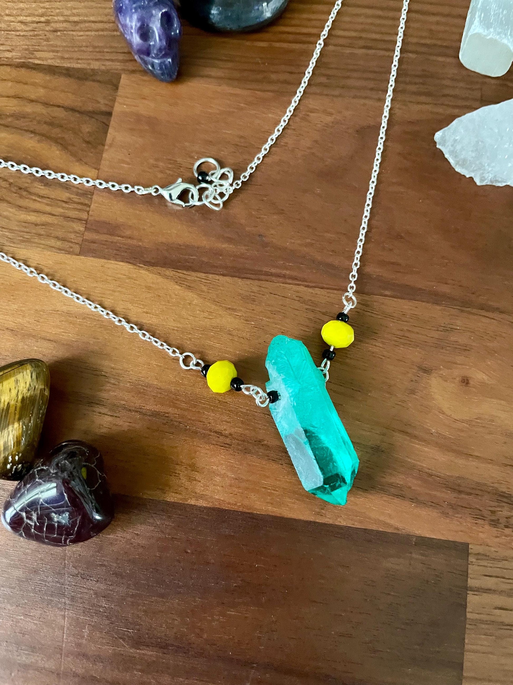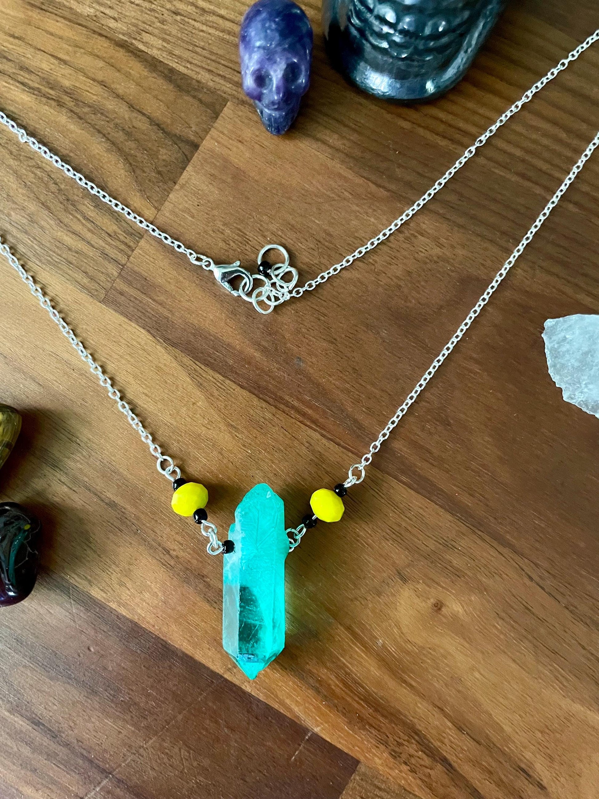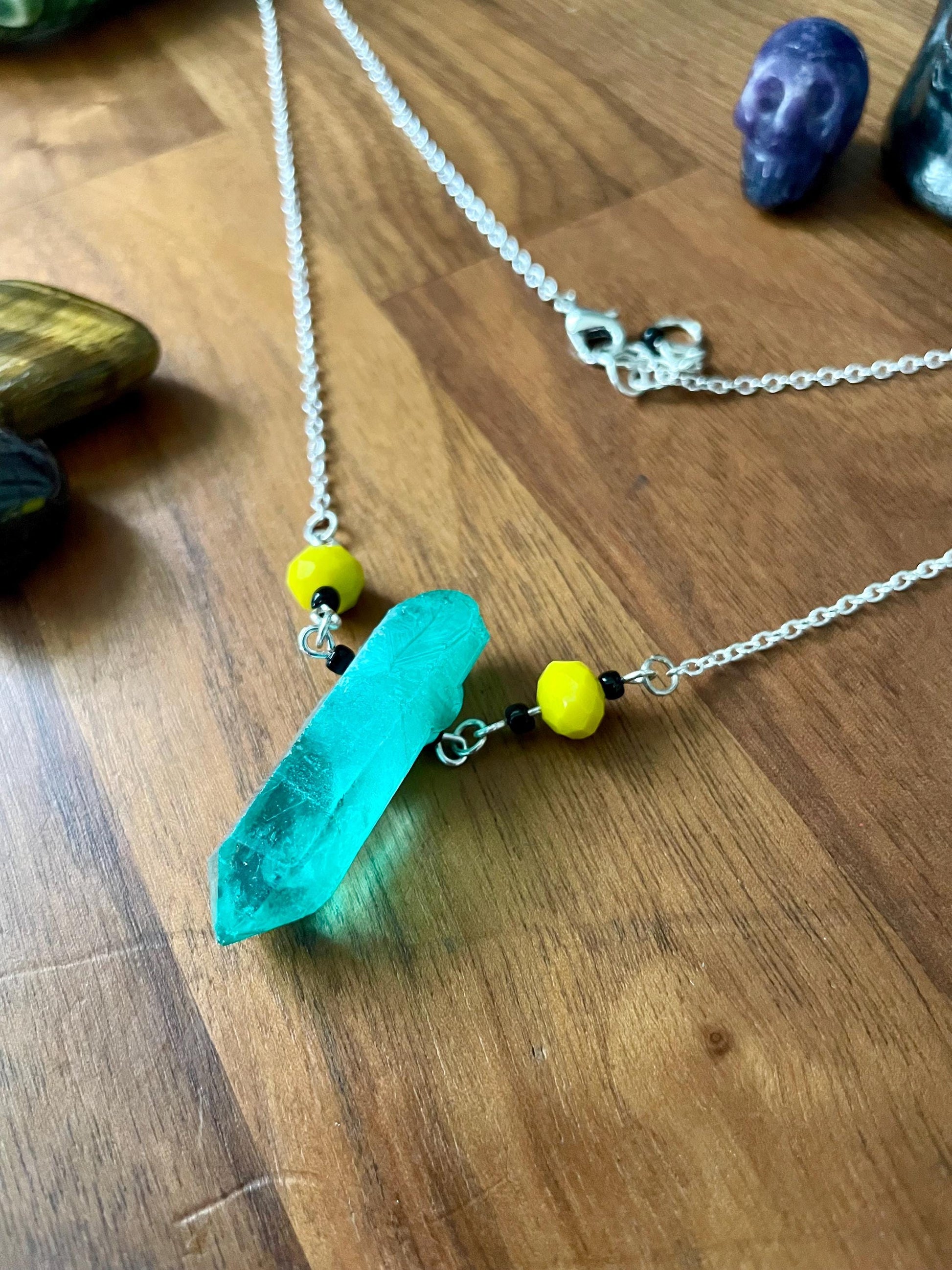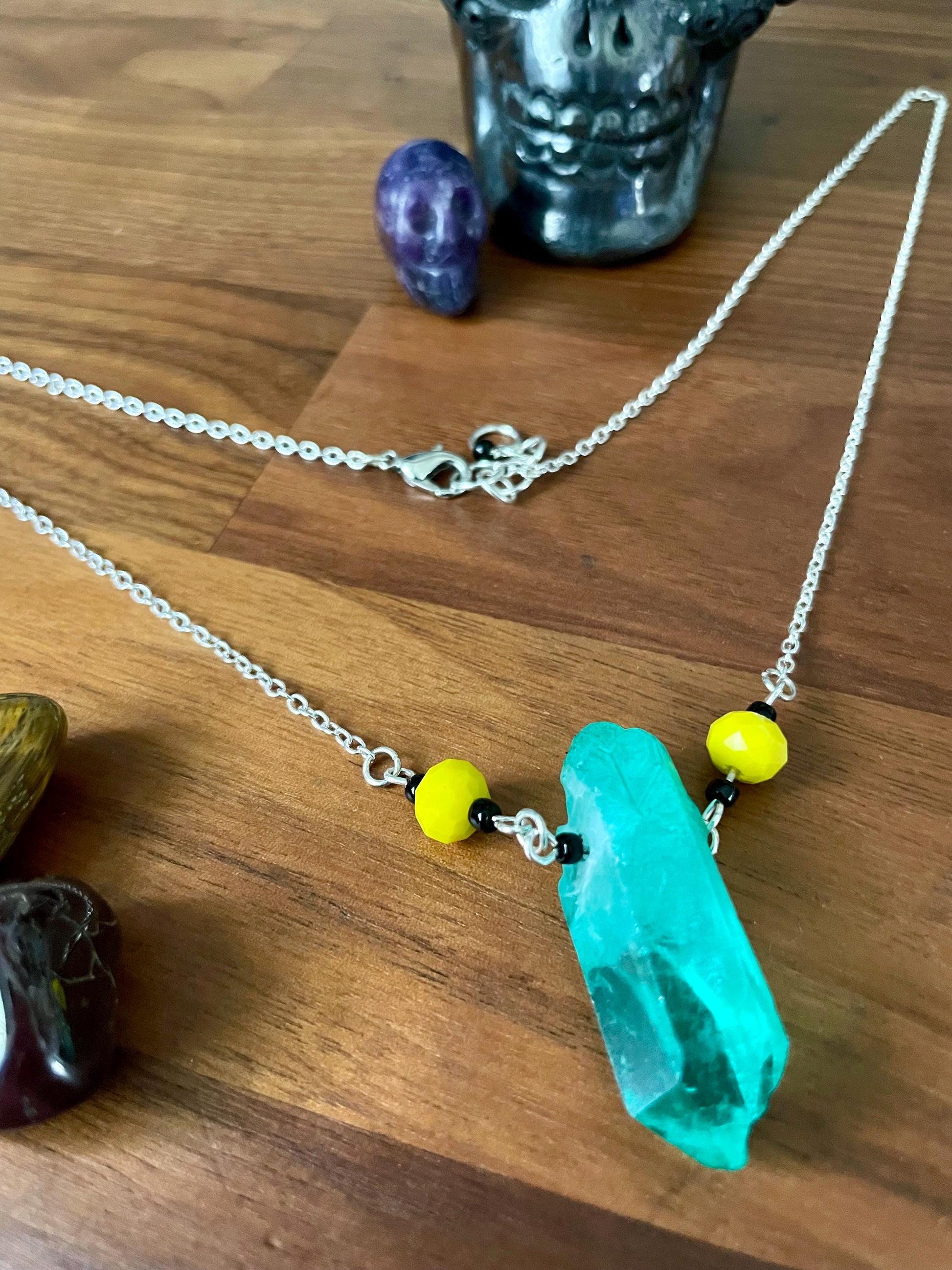 Handcrafted Sedona Quartz Crystal Statement Necklace yellow glass faceted beads | Nickel Free Hypoallergic steel chain